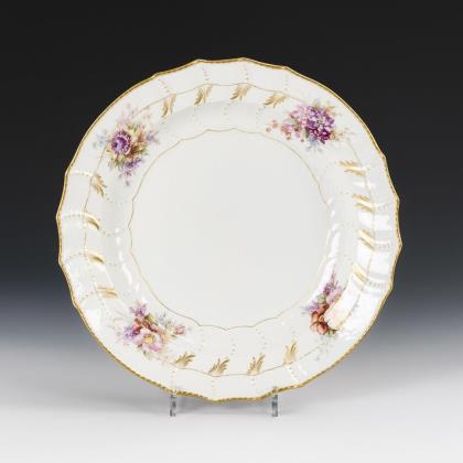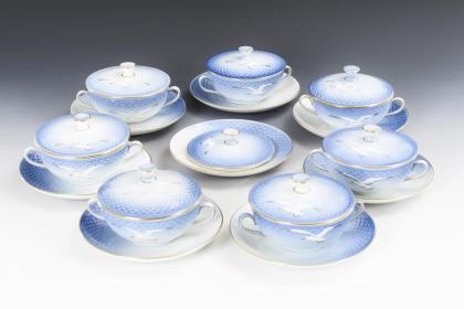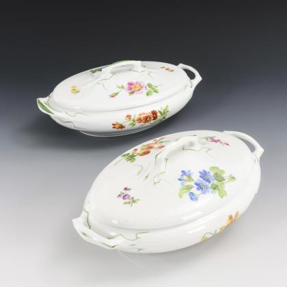 Form "Altozier". 5 Speiseteller, 7 Suppenteller, 1 Buttergießer (L 18,5 cm), 1 Sauciere, 1 Schale (Ø 24,5 cm), 1 Schüssel (Ø 20,5 cm), 1 Tablett (L 31,5 cm), 2 Ovalplatten (L 37 cm) und 1 Terrine (Ø 28,5 cm)