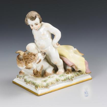 Sich auf einen liegenden Stier stützender Putto