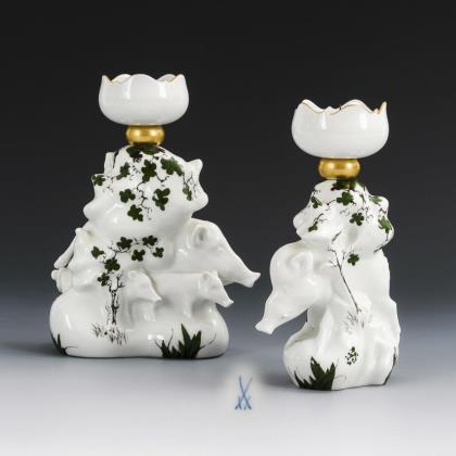 1x als Leuchter gestaltete Plastik einer Bache mit Frischlingen zwischen Bäumen bzw. eines unter einem Baum stehenden Ebers<br /><strong>Nachtrag 08.06.21: <span class="my-1 preview-Condition">Tülle mit Haarriss</span></strong>