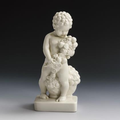 Putto mit Blumengirlande und Blumenkorb