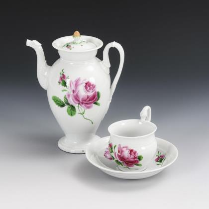 Kanne, Tasse und Untertasse "Rote Rose"