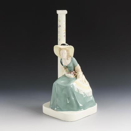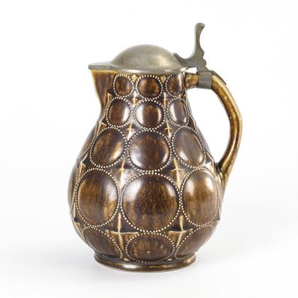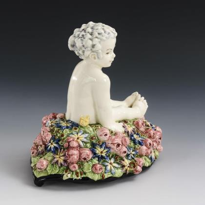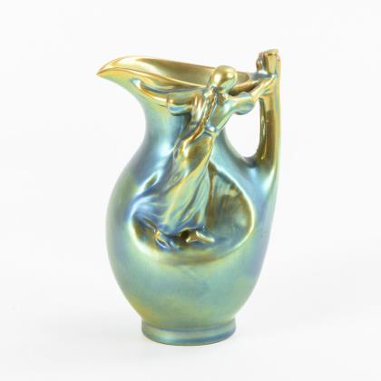 Birnform mit weiter Schneppe, geradem Henkel und 2 teilplastischen Mädchenfiguren