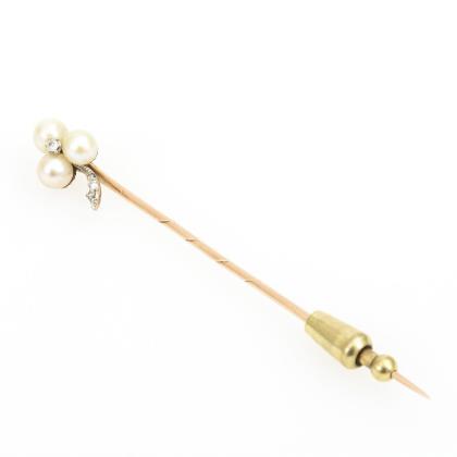 Krawattennadel mit Zuchtperlen und Altschliff-Diamanten, um 1900