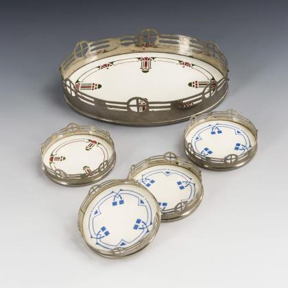 Kleines Jugendstil-Tablett und 4 Untersetzer