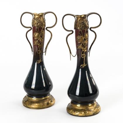 2 Jugendstil-Vasen mit Landschaftsmalerei
