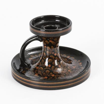 1-flammiger Leuchter mit breitem Tropfschutz, Rundfuß und Tragegriff