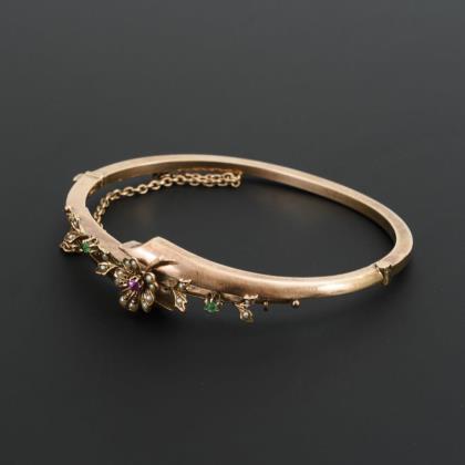 Armreif mit Rubin, Smaragden und Perlchen, um 1900