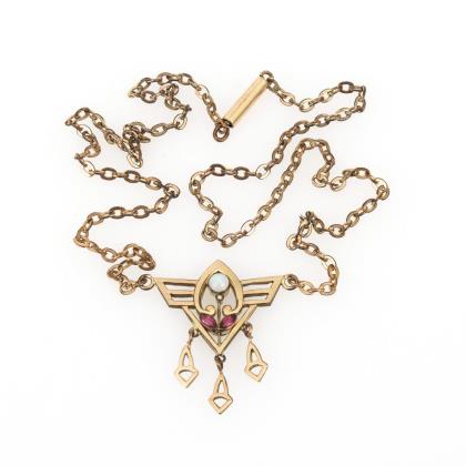 Reizvolles Jugendstilcollier mit Opalen und Perlchen
