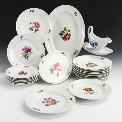 20 Teile eines Speiseservice mit Blumenmalerei