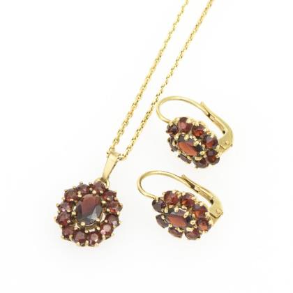 Granatanhänger an Kette und Ohrhängerpaar