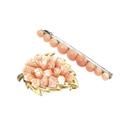 2 Broschen mit Korallen