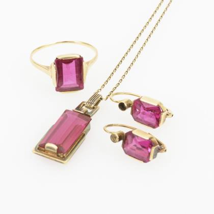 3-teiliges Schmuckset mit rosenroten Steinen?