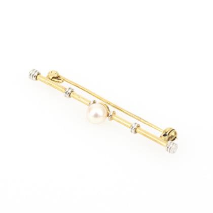 Krawattennadel mit Zuchtperlen und Altschliff-Diamanten, um 1900