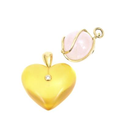 Bernsteinherz mit kleinem Brillant und gefasste Rosenquarzkugel