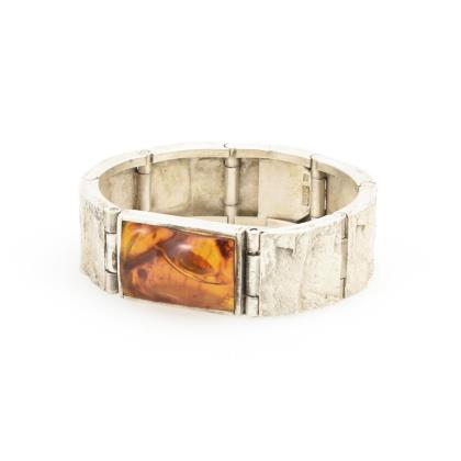 Massives, strukturiertes Gliederband mit Bernsteineinlage