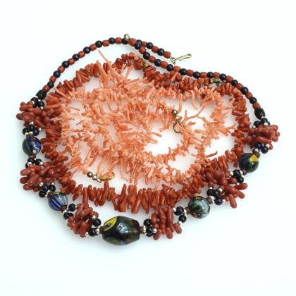 2 Halsketten mit Korallen