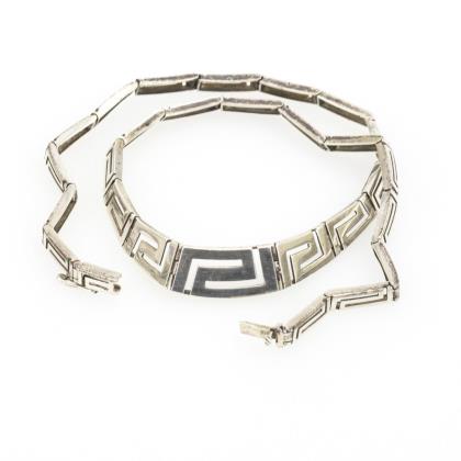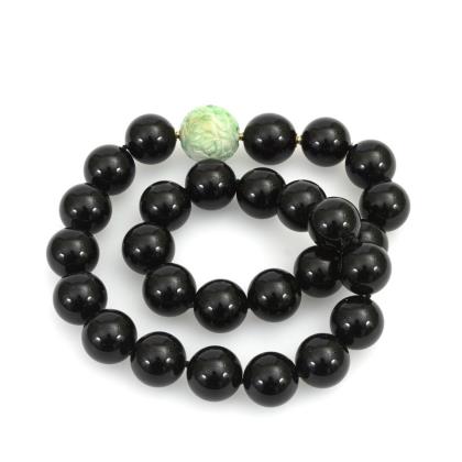 Halskette mit Onyxkugeln und Jadeschließe