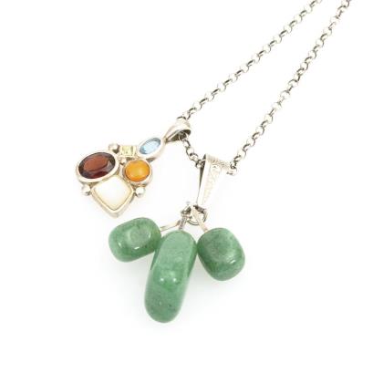 Halskette und 2 Anhänger mit Bernsteinen