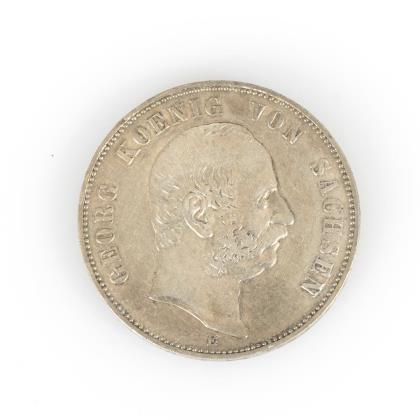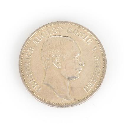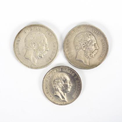 5 Mark, "Albert Koenig von Sachsen", 1875 und 1900. / 3 Mark, "Friedrich August v. Sachsen", 1910