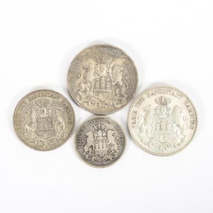 5 Mark, "Freie und Hansestadt Hamburg", 1876 und 1900. / 3 Mark, dito, 1910. / 2 Mark, dito, 1876