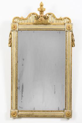 Schreibsekretär "No. 6" aus dem Warenkatalog von 1789: "Ein Bureau für Damen", aus "Abbildungen der vornehmsten Tischlerarbeiten, welche verfertiget werden und zu haben sind bey Friedrich Gottlob Hoffmann [...] erstes Heft". 4-schübiges Kommodenunterteil mit seitlich vorgestellten Säulen, Mittelteil mit Schreibklappe, bekrönt von getrepptem Kopfteil mit Dachgiebel; reich verziert mit Messingapplikationen, Mäandergittern und für Hoffmann-Werkstätten typischen Zahnschnittbändern, im Giebel mit figürlicher Wedgwood-Auflage. Innenteil mit herausziehbarer Schreibplatte, 8 kleinen Schüben und Mittelfach mit Schiebetür. 4 Schlüssel. Als Beigabe 3 Publikationen, in denen das Stück mitunter abgebildet ist