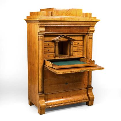 Biedermeier-Schreibkommode mit Vitrinenaufsatz