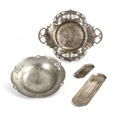 Konvolut 4x Jugendstil-Zinn