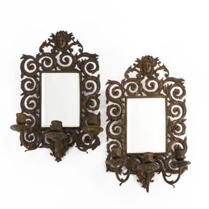 Wandleuchter mit À-Jour-Akanthusrahmung und Frauen-Maskaronen sowie 3 vegetabile Arme für die Kerzenleuchter