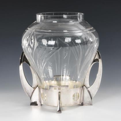 Große Jugendstil-Glasbowle mit Metall-Halterung