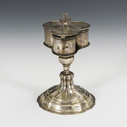 Sogenanntes "Chrismarium" oder "Chrismatorium", auf dem Deckel bezeichnet mit den Buchstaben "O", "C" und "I" für die 3 heiligen Öle