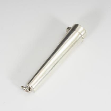 Schlanke, konische Form mit Scharnierdeckel und Öse zur Aufhängung