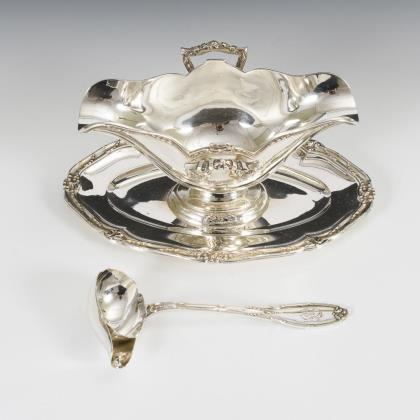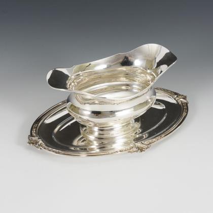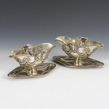 Elegante, mit Widderköpfen und Girlanden reliefierte Saucieren