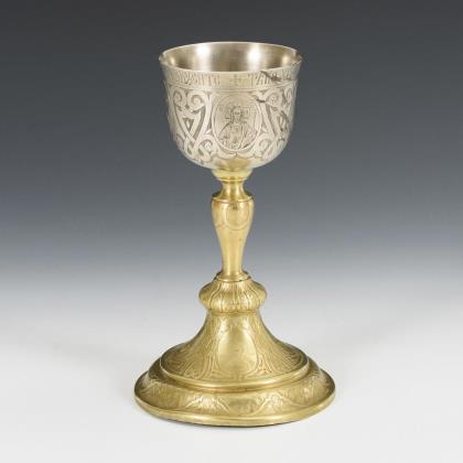 Vergoldeter Silberkelch mit Zierbuckeln und Floraldekor