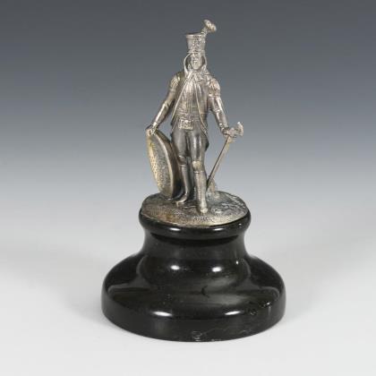 Silberplastik eines Bergmannes mit Freiberger Wappen, auf Serpentinsockel