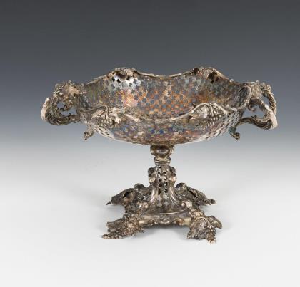 Reich reliefierte, durchbrochen gearbeitete Fußschale