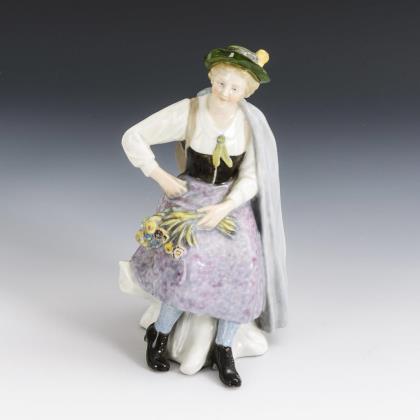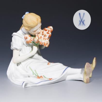 Girl with a bouquet of flowers. Meissen.