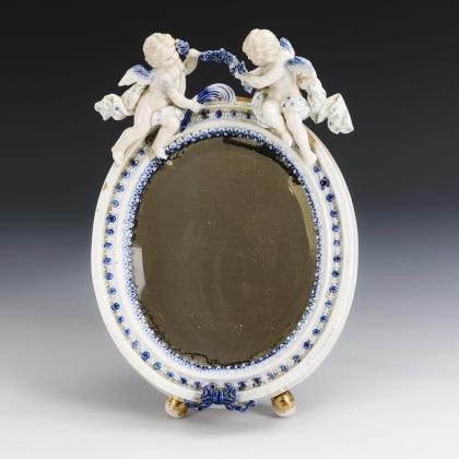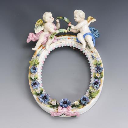 Porcelain frame with putti crowning.