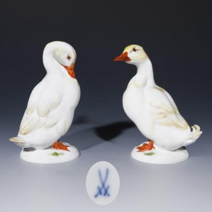 Pair of animal figures: duck and drake. Meissen.