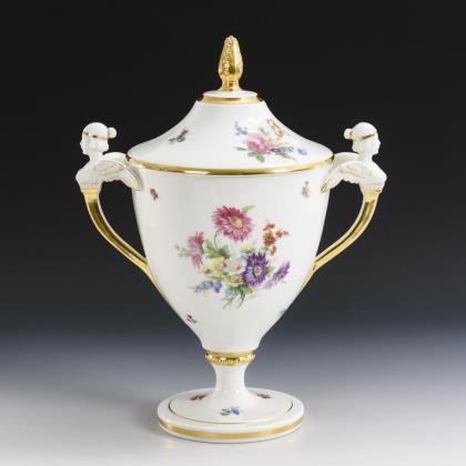 Modell von Johann Carl Schönheit 1786. Farbig bemalt, gold staffiert. Ritzmarke, Pressmarke, Malermarke, Schwertermarke