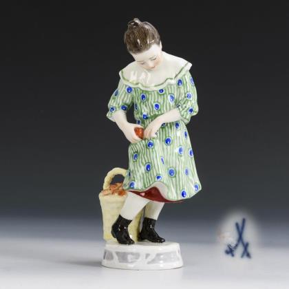 Art nouveau girl with apple basket. Meissen.