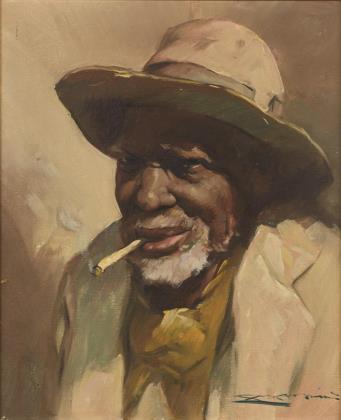 Charakterbildnis eines afroamerikanischen Mannes mit Zigarette