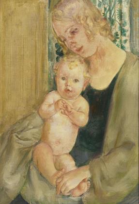Die Mutter mit dem nackten Säugling auf dem Schoß