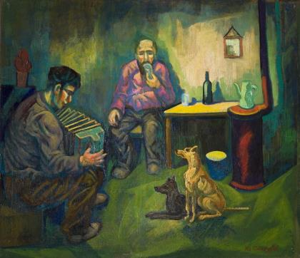 RUSSIAN PAINTER FIRST HALF OF 20TH CENTURY. Genre scene with accordion player.