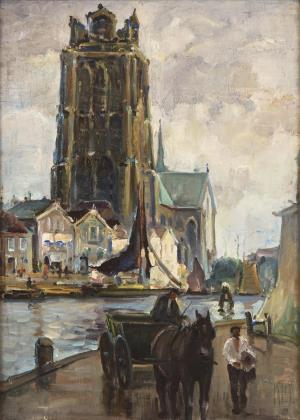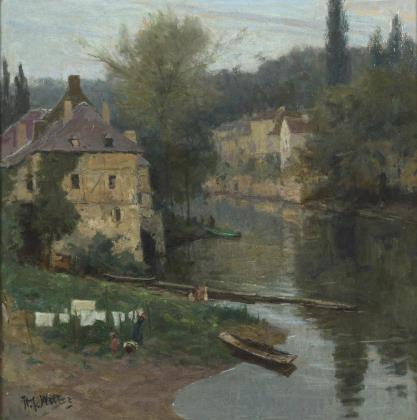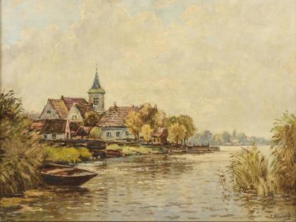 WOLTER, Hendrik Jan (1873 Amsterdam - 1952). River Landscape with Village.