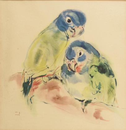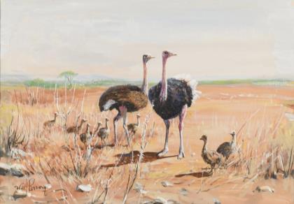 LORENZ, Willy (1901 Cologne -1981 ibid.). Pair of Ostriches with Young.
