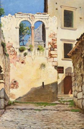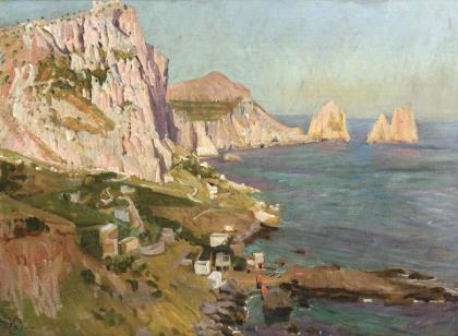 BAUMEISTER, Hermann (1867 Karlsruhe - 1944 Karlsruhe). Italian Coastal Landscape.