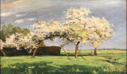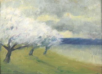 NIELSEN, Knud Reinholdt (1891 Aarhus - 1984 Copenhagen). Deer under flowering trees.