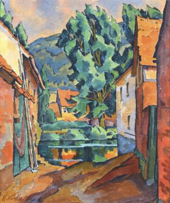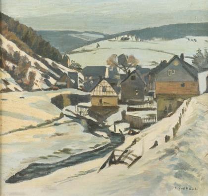 KAUL, August (1875 Hamburg - 1949 Dusseldorf). Mountain Village in the Snow.