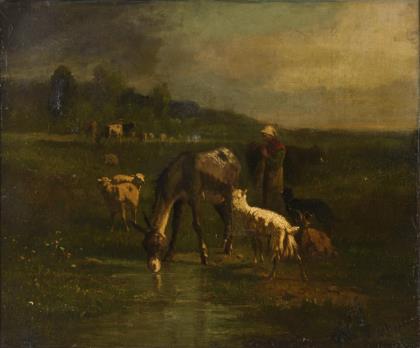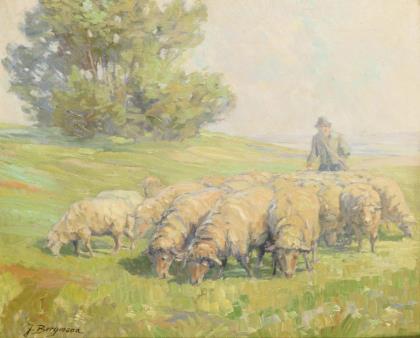 BERGMANN, Julius (1861 Nordhausen - 1940 Karlsruhe). Shepherd with Sheep.