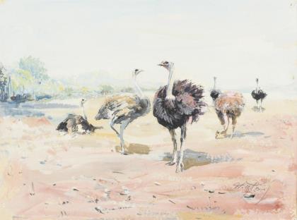 LORENZ, Willy (1901 Cologne - 1981 ibid.). African Landscape with Ostriches.